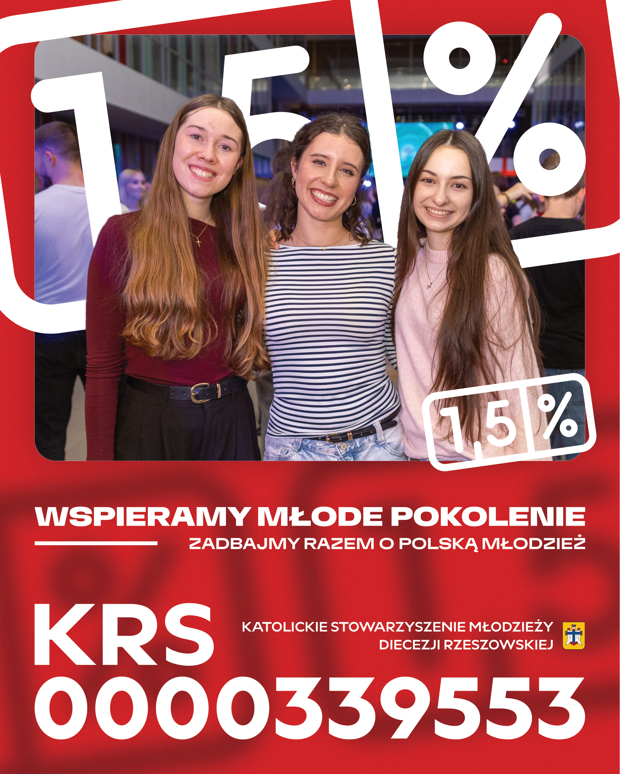 Dziękujemy Wam za każde 1,5% przekazane do tej pory na rzecz Katolickiego Stowarzyszenia Młodzieży. Zapewniamy, że zostało wykorzystane dla wspólnego dobra oraz rozwoju Stowarzyszenia i jego członków, czyli nas wszystkich!