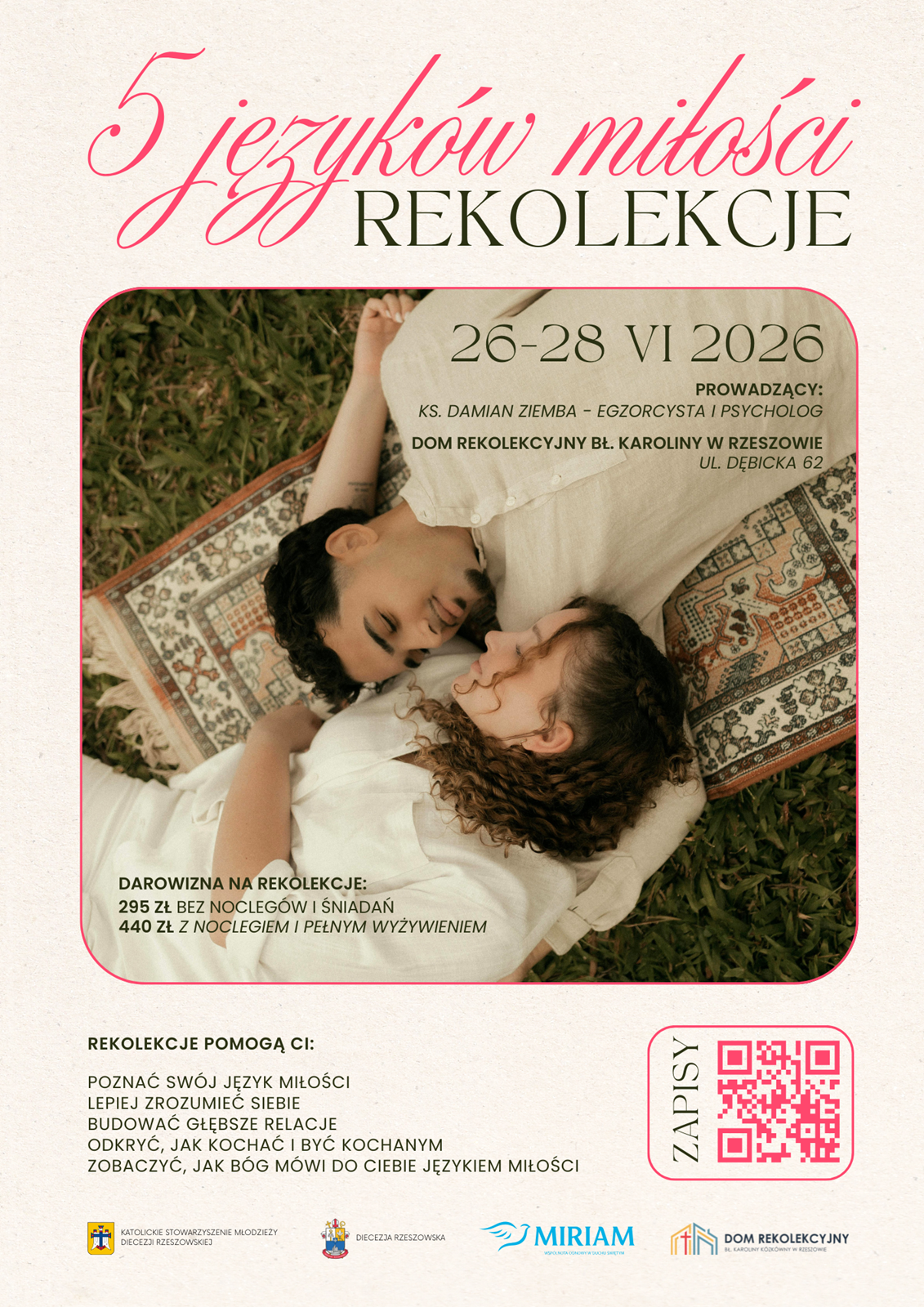 Wielu z nas doświadcza sytuacji, w których kochamy – a mimo to nie czujemy się kochani. Te rekolekcje pomagają odkryć dlaczego tak się dzieje. Kluczem jest poznanie własnego języka miłości oraz języka drugiej osoby.